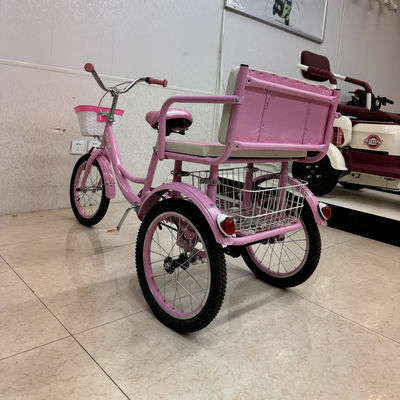 This parent-child pink human-powered pedal tricycle is a travel tool specially designed for adults to take kids and for two-person leisure. Its tender pink appearance is full of childlike charm, and the body design balances passenger carrying and storage functions. Whether parents take their children for daily travel, nearby outings, or ride casually with family members, it can bring a warm and convenient experience.
