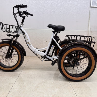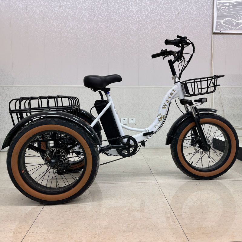 This single-seat three-wheel electric leisure vehicle is designed as a stable and anti-slip commuter for adult short-distance travel. It features a foldable aluminum alloy frame/front fork with a shock-absorbing and lockable system, ensuring stability and easy storage. The 6061 aluminum alloy combined handlebar provides secure control. Powered by a 48V 500W mid-drive motor and a 48V 15AH battery, it offers reliable power for short-distance commutes. The Shimano rear 7-speed derailleur allows for smooth speed adjustments, and the 20*4.0 colored outer tire with butyl inner tube delivers excellent anti-slip performance on various roads. Whether you’re commuting short distances in the city or running errands, this tricycle combines stability, anti-slip capability, and practicality for your daily travel.
