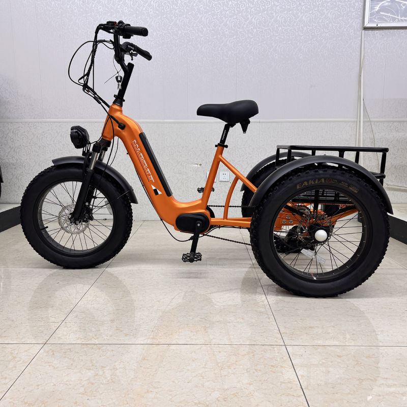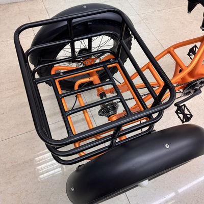 This orange electric tricycle assist bike integrates performance and appearance. From materials to craftsmanship, it shows quality: the high-carbon steel frame and front fork are welded by argon arc, which is sturdy and reliable, and the shock-absorbing front fork ensures riding comfort. The 48V 500W motor is full of power, and it is effortless to start and climb hills. The 48V 13AH battery escorts the battery life, allowing you to travel without worry. The Shimano 7-speed rear derailleur is easy to operate and shifts smoothly, helping you explore different road conditions. The large-size outer tire has stable grip, making riding safer. The eye-catching orange body is full of fashion sense, adding vitality to your travel.